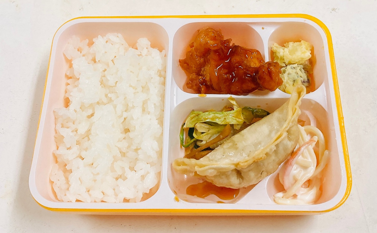 水餃子、ハッシュドポテト、肉焼売、味付油揚げ、親子煮、塩レモン和え、ザーサイ和え
