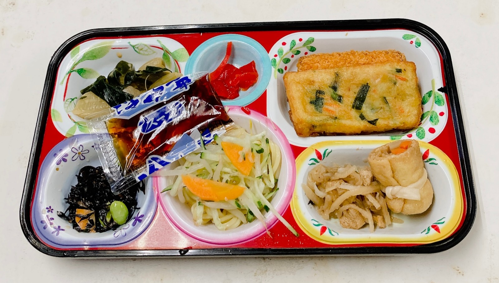 カレーコロッケ、豚ヒレ串カツ、ミートオムレツ、竹の子甘酢煮、マカロニベーコンソテー、大根高野豆腐卵とじ煮、ピーマンお浸し