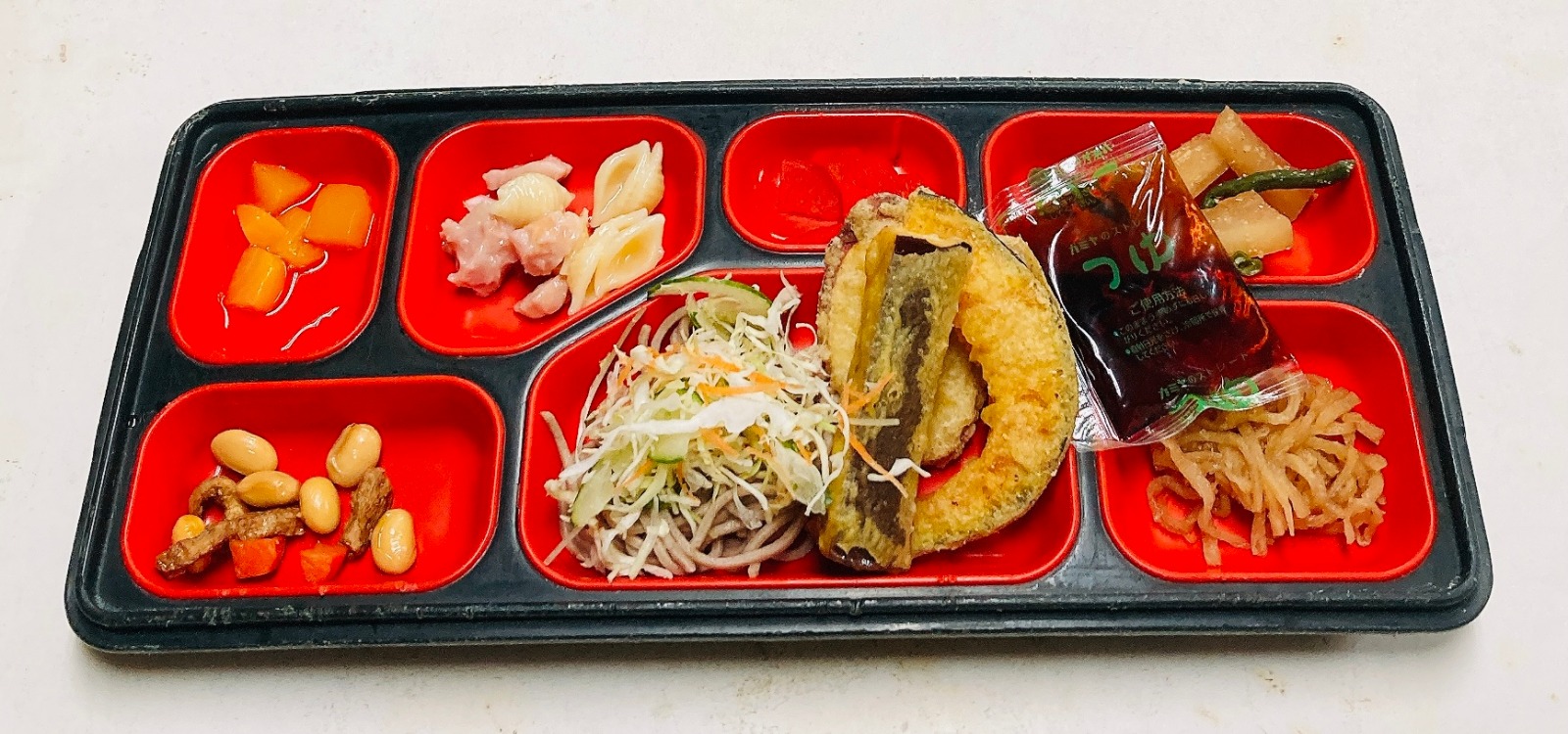 豚しゃぶサラダ、焼餃子、野菜春巻き、塩焼きそば、ひじき煮、大根キムチ