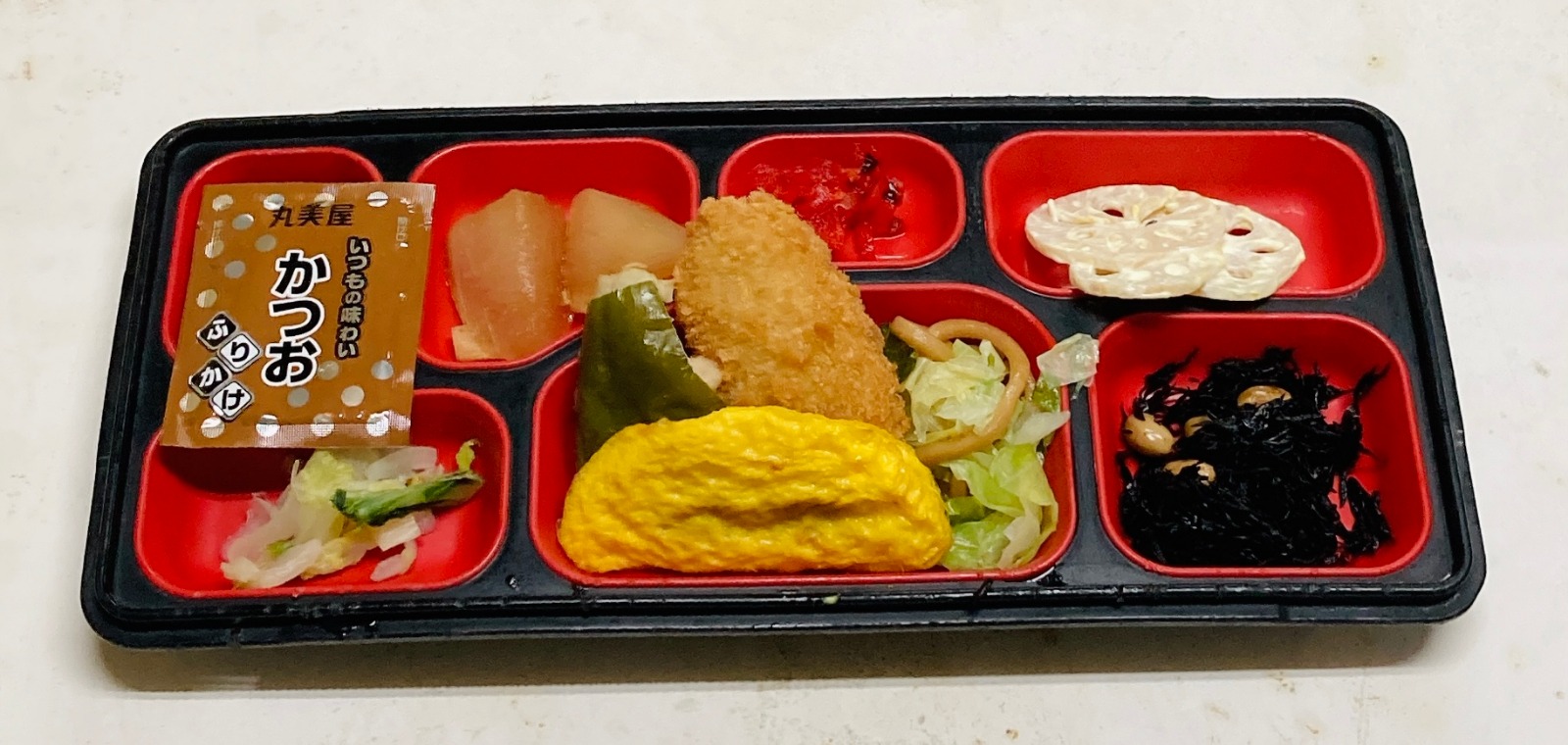 白身魚フライ、肉詰めピーマン焼、焼うどん、ミートオムレツ、冬瓜煮、ベーコンソテー、蓮根辛子マヨ和え