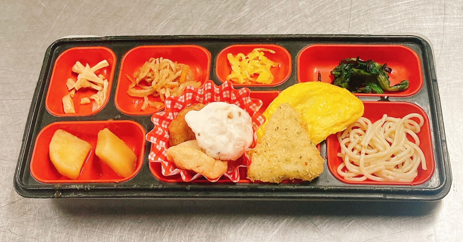 ミートオムレツ、チーズポテトフライ、椎茸しんじょう、炊き合わせ、切干大根煮、味噌ポテト、汐昆布和え