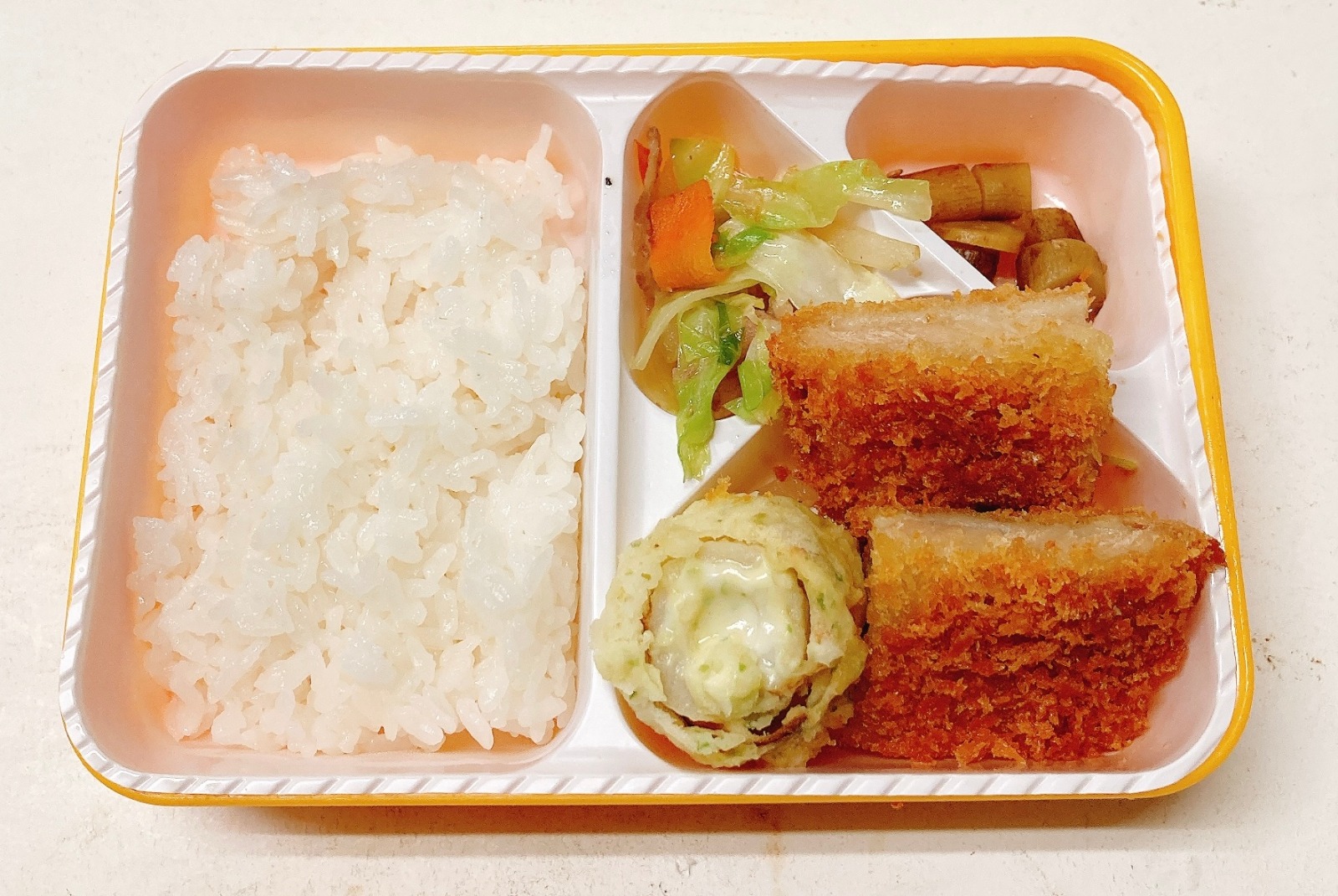 ・豚カツ・竹輪チーズ磯辺揚げ・野菜炒め・牛蒡煮