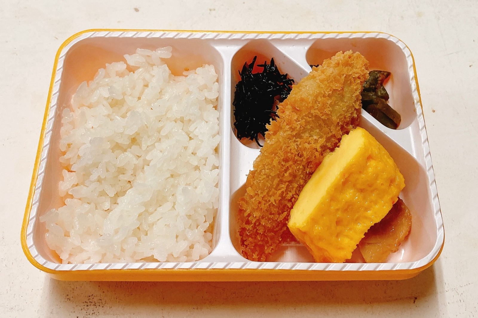 ・白身魚フライ・チキンソテー・オムレツ・ひじき煮・いんげん胡麻和え