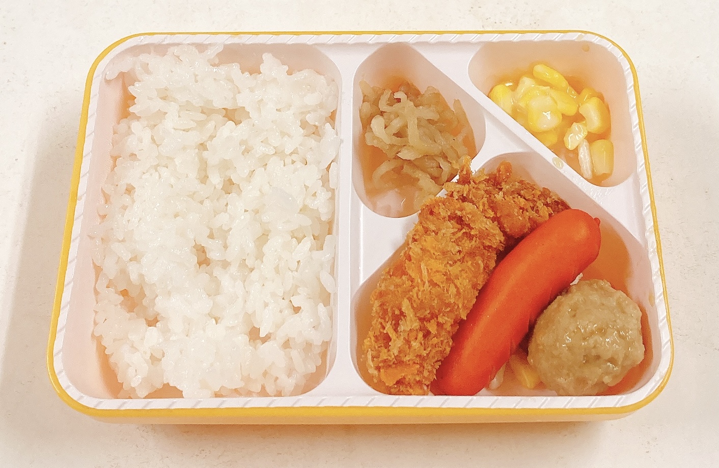 ・エビフライ・肉団子・スパゲティー・ウインナー・切干大根煮・コーンサラダ