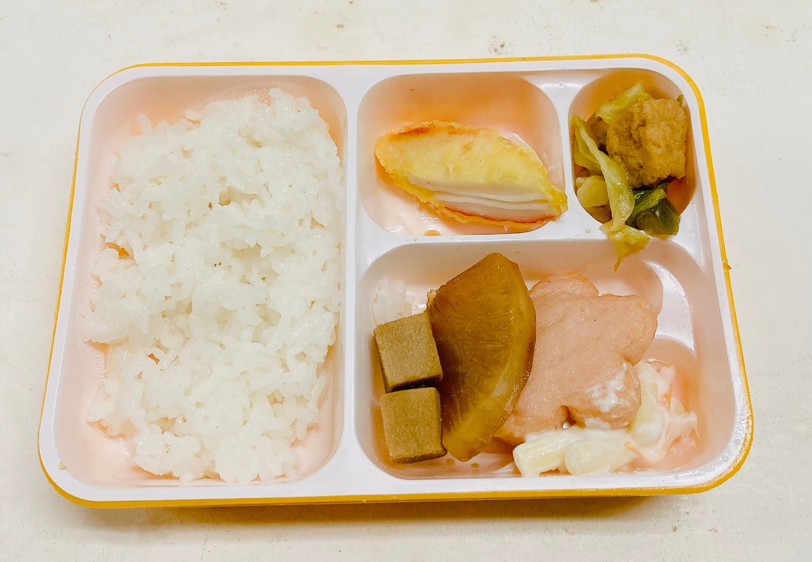 ・キャベツと厚揚げ煮・カニカマ天・高野豆腐・花さつま・高野豆腐・マカロニサラダ