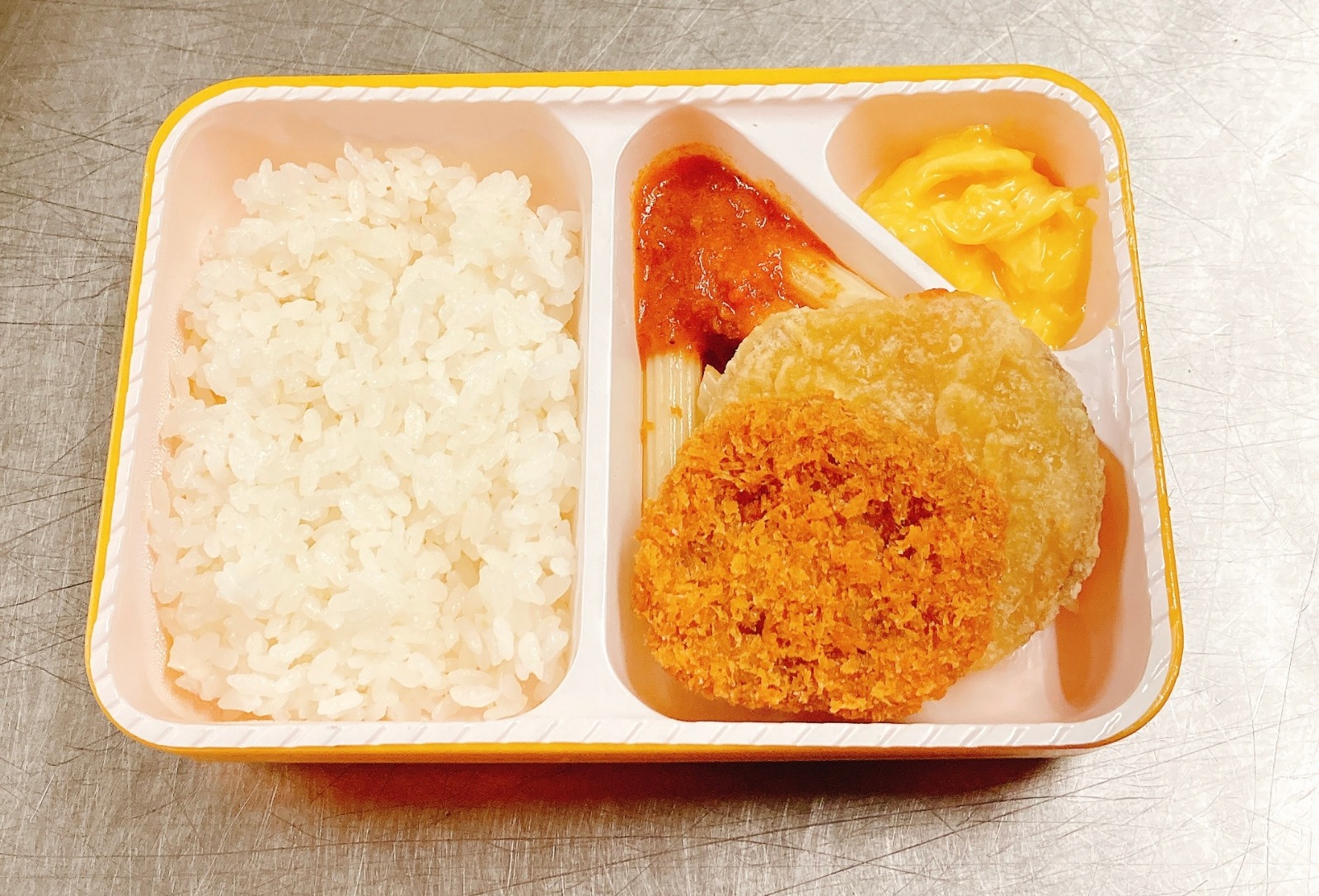 ・蓮根カレーフライ・さつま芋天ぷら・ペンネミートソース・スクランブルエッグ