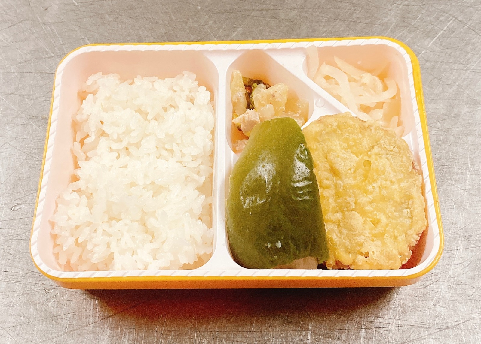 ・ピーマン肉詰め焼・さつま芋天ぷら・焼きそば・白菜煮・生酢